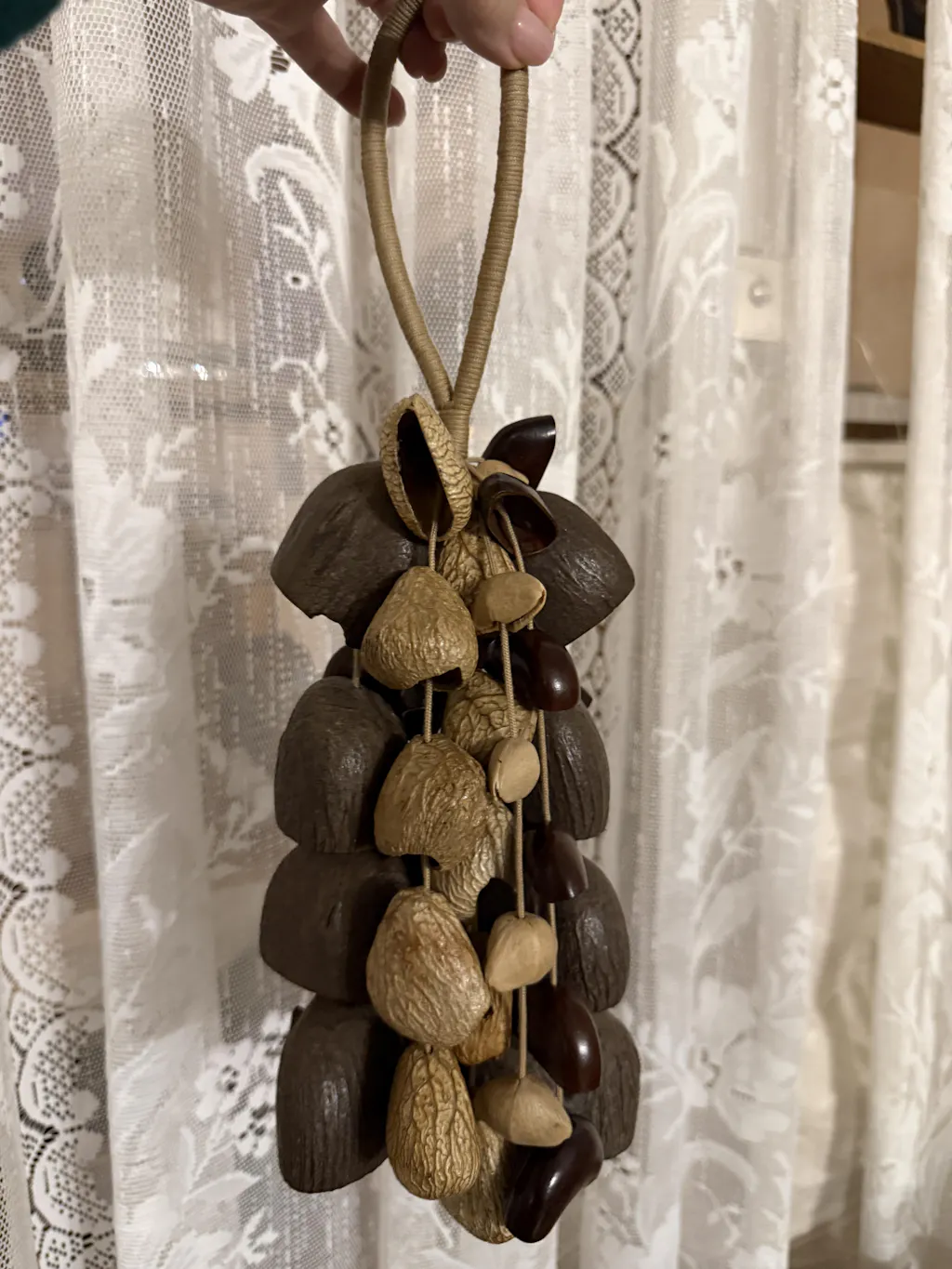 "The Deep Woods Rattle" - Dark Nut & Hollow Pod Cluster Charm with Rope Loop